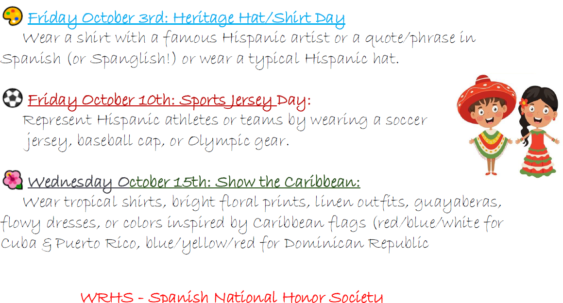 Hispanic Heritage Month Celebrate Hispanic Heritage Month at WRHS September 15-October 15! Hispanic Heritage Dress Up Days